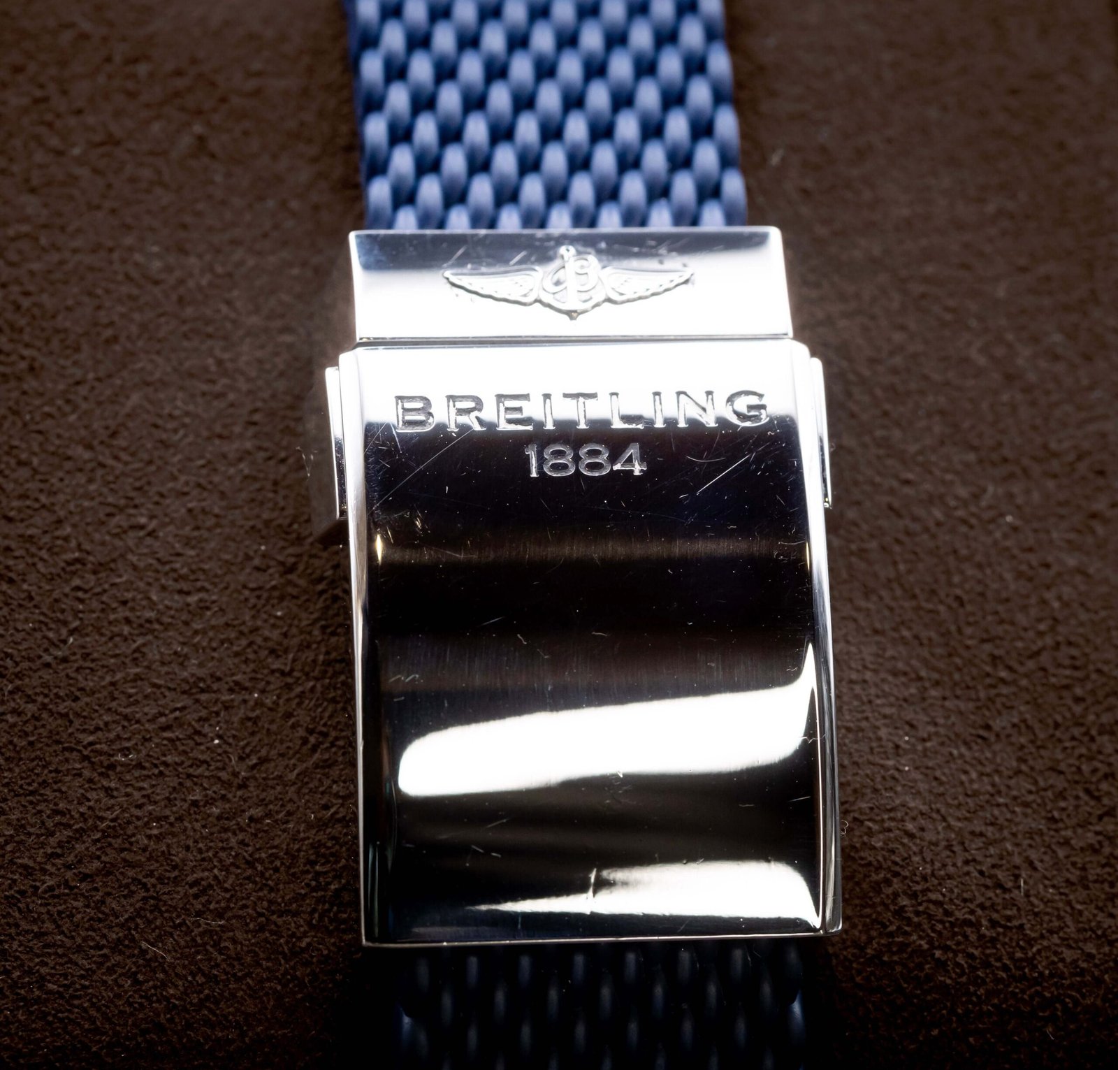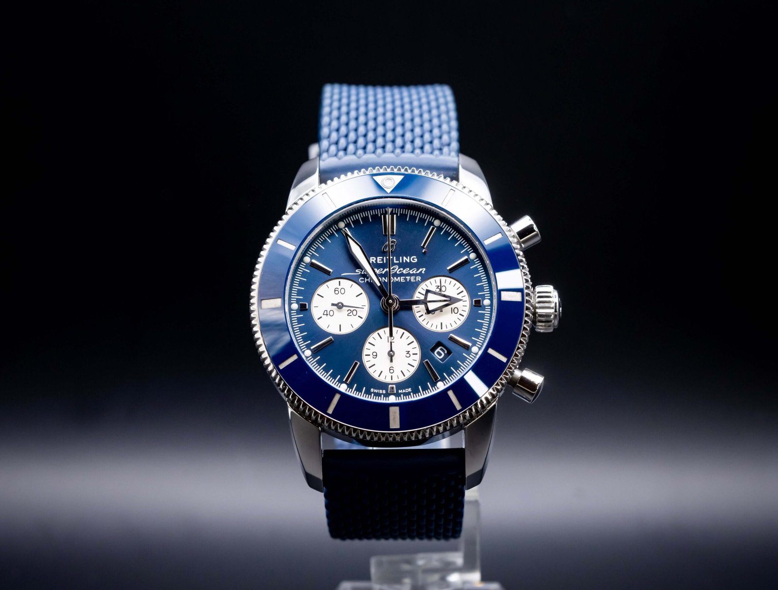 Breitling Superocean II Chronograph 40mm with blue dial and rubber strap. Sporty and versatile.