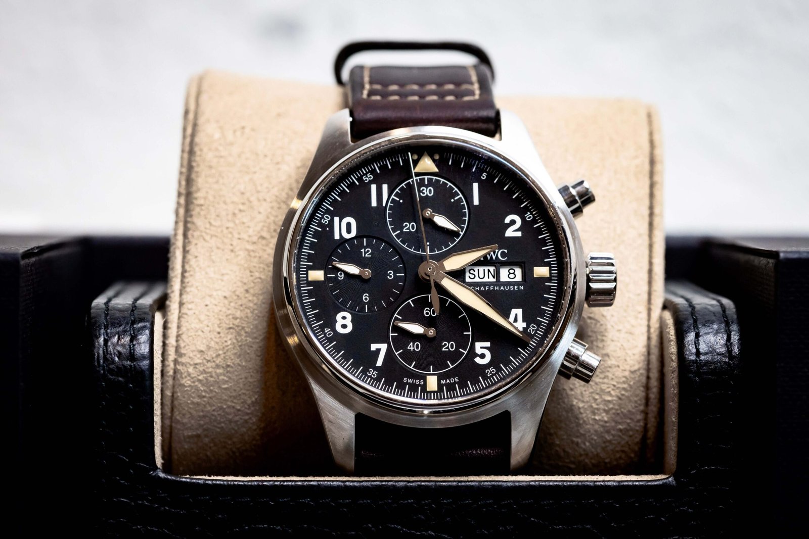 Offered here is a stunning IWC Pilot’s Watch Chronograph Spitfire IW387903, one of the best-wearing modern pilot chronographs on the market. With its perfectly balanced 41mm stainless steel case, classic aviation design, and IWC’s in-house chronograph movement, this piece blends heritage styling with everyday usability.