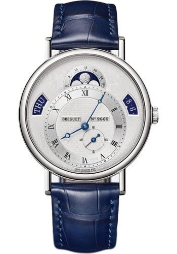 Breguet Classique Calendrier 7337 – White Gold Case – Gold Dial – Blue Leather Strap – 7337BB/12/9VU