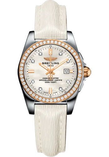 Breitling Galactic 29 Sleek Watch – Stainless Steel – Mother-Of-Pearl Dial – White Calfskin Leather Strap – Tang Buckle – C72348531A1X1
