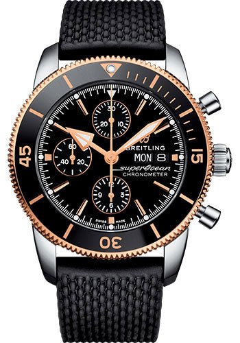 Breitling Superocean Heritage II Chronograph 44 Watch – Steel and Rose Gold Case – Volcano Black Dial – Black Rubber Aero Classic Strap – U13313121B1S1