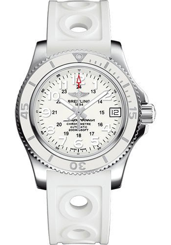 Breitling Superocean II 36 Watch – Steel – Hurricane White Dial – White Ocean Racer II Strap – Tang Buckle – A17312D21A1S1