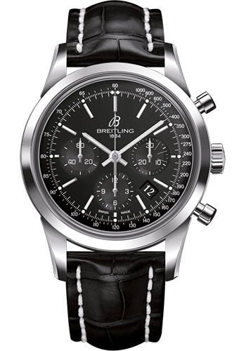 43.00 mm steel case, 14.35 mm thick, transparent sapphire crystal back, non screw-locked crown with two gaskets, convex sapphire crystal with glareproof treatment on both sides, black dial, Breitling 01 (Manufacture) self-winding movement, approximately 70 hrs of power reserve, black croco strap, folding buckle. Water resistant to 100 m (330 ft).