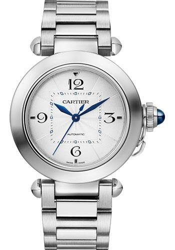 35 mm steel case, fluted crown cap, silver flinque dial, caliber 1847 MC automatic movement, second navy alligator-skin strap, steel bracelet with smartlink adjustment system, interchangeable steel deployant buckle. Water resistant to 10 bar (approx 100 meters/100 feet).