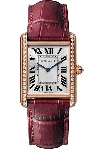 33.7mm x 25.5mm 18K pink gold case with 40 brilliant-cut diamonds, 6.6mm thick, beaded crown with a brilliant-cut diamond totalling 0.65 carats, mineral crystal, silvered dial, caliber 8971 MC manual movement, burgundy alligator skin strap, 18K pink gold 16mm double adjustable folding buckle. Water resistant to 30 meters.