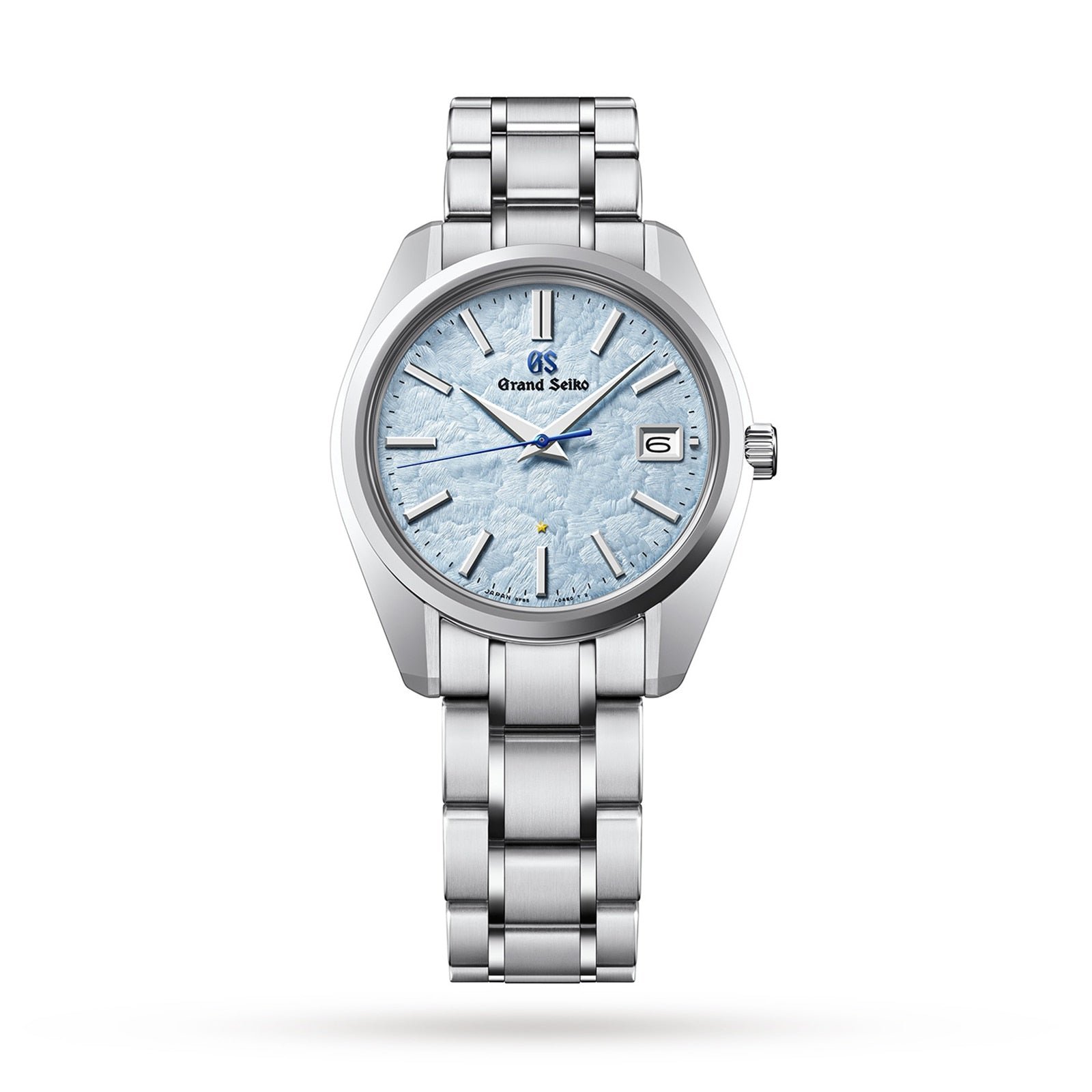 The dial is as remarkable as the caliber that delivers this exceptional accuracy. It has the texture of the sea of clouds that form around the mountains on some mornings in the Shinshu region where this and all Grand Seiko quartz watches are made. Sometimes, the air is so still and humid that dense clouds gather and overlap to create a sea of clouds above ShinshuÕs lowlands that stretches away to the horizon in every direction and that is tinged with blue, reflected down from the clear skies above them.