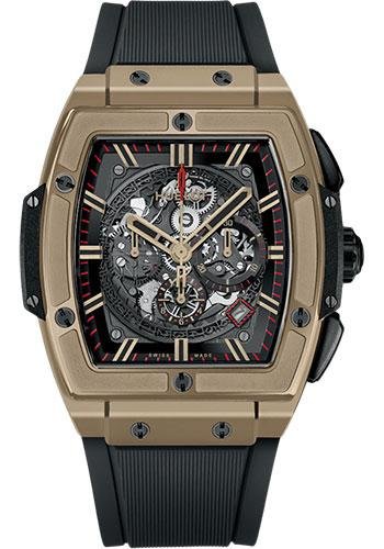 45 mm polished sapphire crystal case, polished sapphire crystal bezel with 6 h-shaped titanium screws, sapphire crystal with anti-reflective treatment, sapphire crystal dial, HUB4700 self-winding skeleton chronograph movement, approximately 50 hours of power reserve, black structured lined rubber strap, black ceramic and black-plated titanium deployant buckle. Water resistant to 50m (5 ATM).