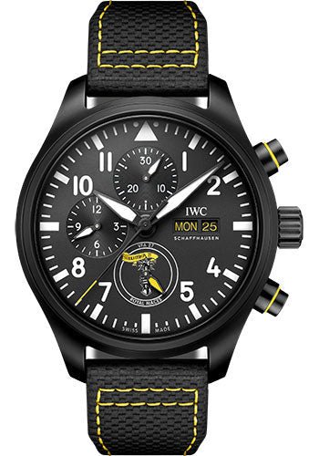 IWC Pilot’s Watch Chronograph Edition Royal Maces Watch – Ceramic Case – Black Dial – Black Calfskin Strap – IW389107