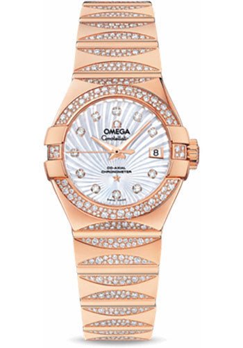 Omega Ladies Constellation Luxury Edition Watch – 27 mm Red Gold Case – Snow-Set Diamond Bezel – Mother-Of-Pearl Supernova Diamond Dial – 123.55.27.20.55.003