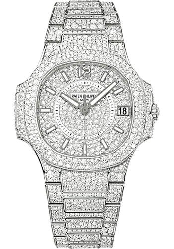 33.6 mm 18K white gold case paved with diamonds, sapphire-crystal back, diamond paved dial, caliber 324 S C self-winding movement with date in an aperture and center sweep second hand, approximately 35-45 hours of power reserve, 18K white gold bracelet paved with diamonds, fold-over buckle. Water resistant to 30 m.