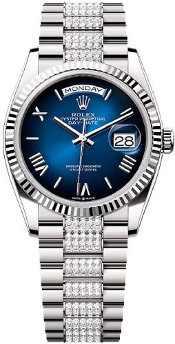 | Bracelet | Diamond-Set President, semi-circular three-piece links |