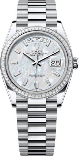Rolex Day-Date 36 36mm White MOP Diamond-Set Dial Diamond-Set Bezel President Bracelet – 128396TBR | 2024 Model