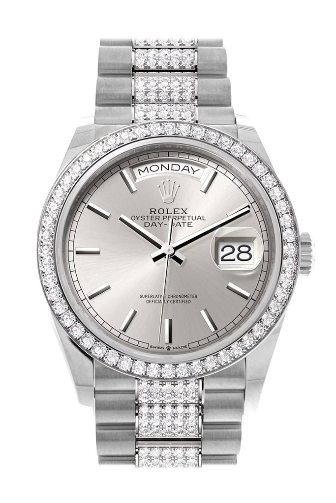 More than just a timekeeping instrument, this watch is a symbol of refinement, luxury, and exclusivity. The Rolex Day-Date 36 Silver Dial Diamond Bezel White Gold Diamond President Watch 128349RBR is not just an accessory; it’s a statement—an emblem of timeless elegance and prestige that transcends generations.