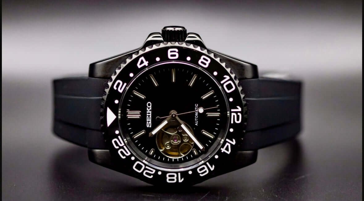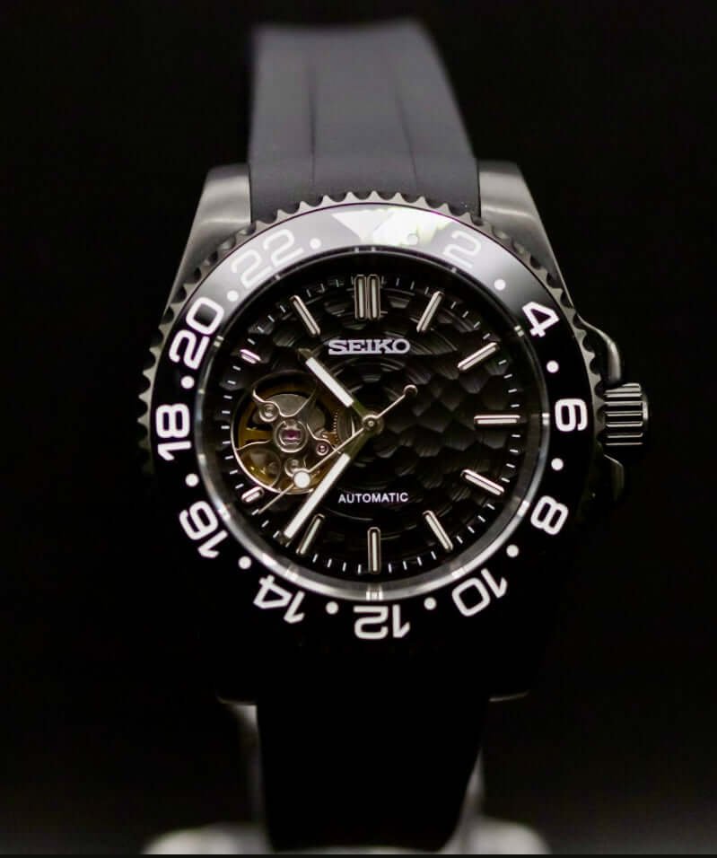Experience unparalleled craftsmanship with the SeikoMod Black Open Heart from Kingdom Watch Company. Our skilled artisans meticulously craft each timepiece, ensuring every detail exemplifies our dedication to quality and precision. Featuring a striking black dial and robust tourbillon view, this watch is a testament to sophisticated design and mechanical excellence. Elevate your collection with a unique mod that embodies elegance and functionality.