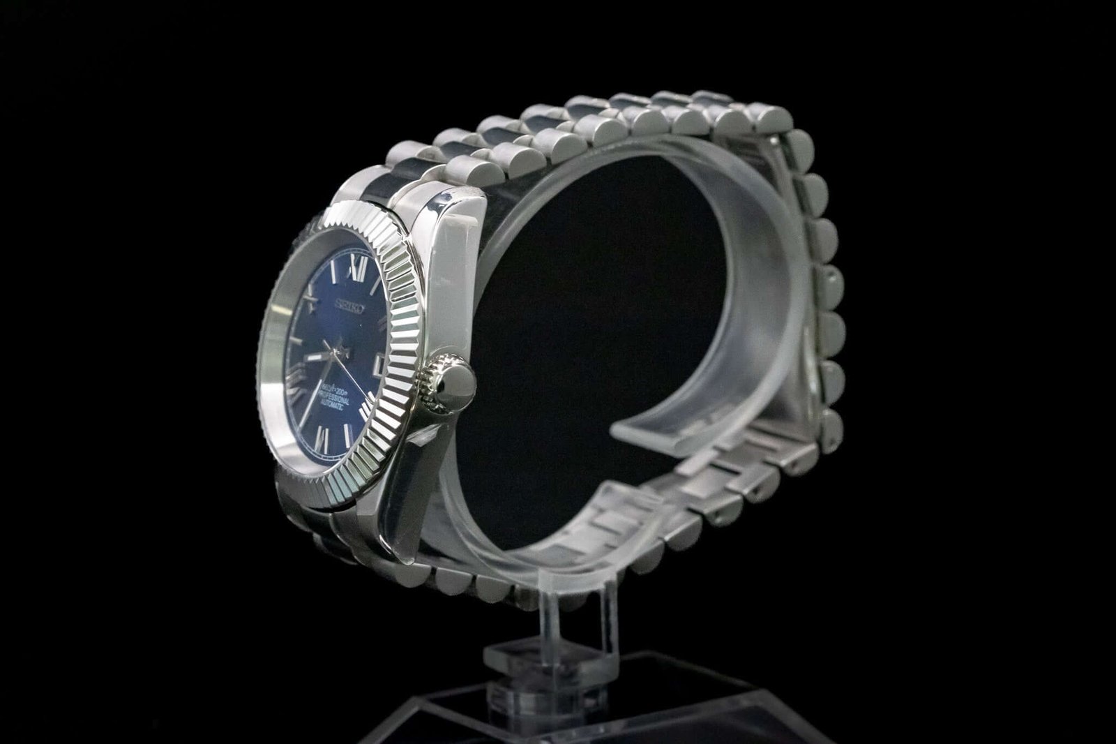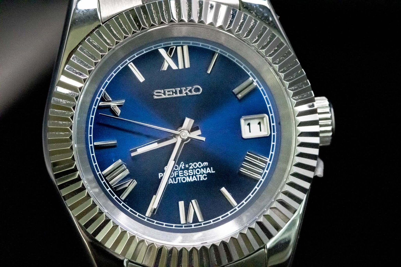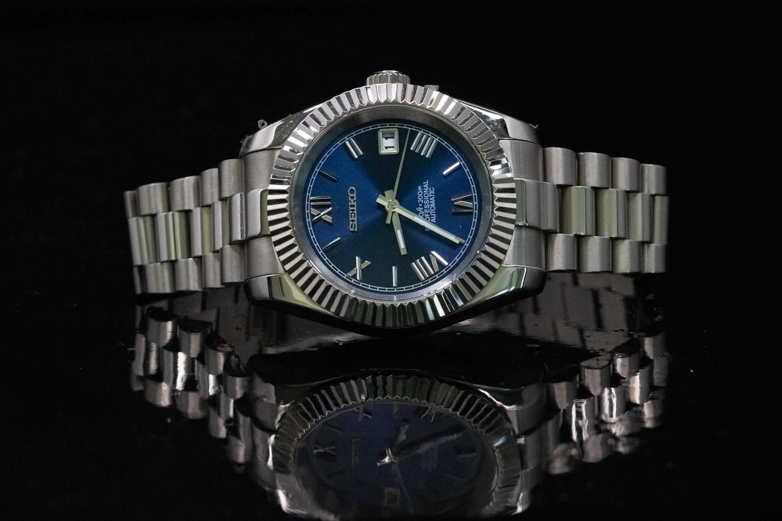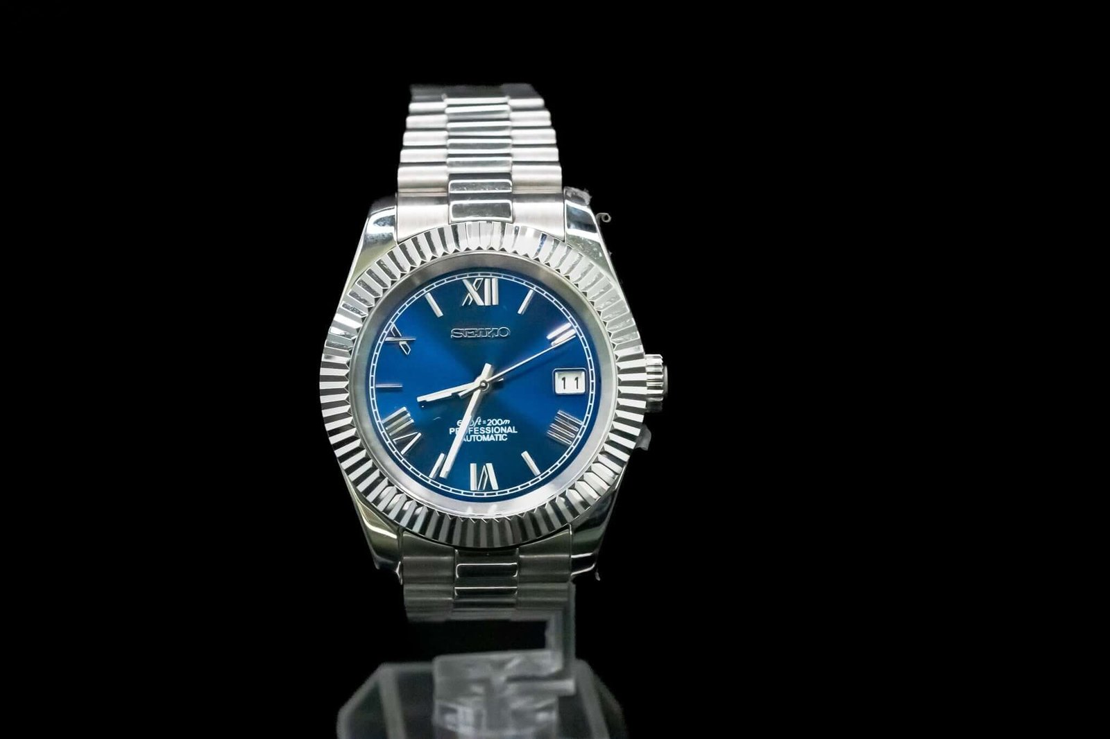 Discover the Seikomod Blue Roman Elegance, a meticulously crafted Seiko 8285 Automatic Watch, inspired by the iconic “DateJust” design. This elegant timepiece features an Blue Roman aftermarket dial, encased in a 40 mm fluted bezel, offering a blend of style and precision for watch enthusiasts.