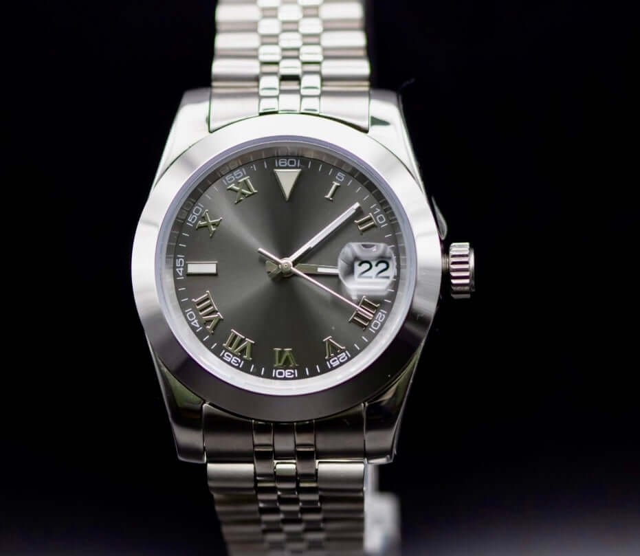 Introducing the Gray homage DateJust Men’s Watch, a timeless and classic timepiece for the modern gentleman. With a 39mm case and Roman numeral markers on a striking silver dial, this watch exudes sophistication and elegance. Powered by the NH35 automatic mechanical movement, you can trust in the reliable accuracy and performance of this wristwatch.