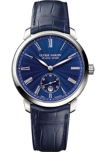 40mm stainless steel case, sapphire crystal, grand feu marine blue enamel dial, Caliber UN-320 Self-winding movement with oversized seconds-hand, date, manufacture movement, leather strap, simple buckle. Water resistant to 30m.