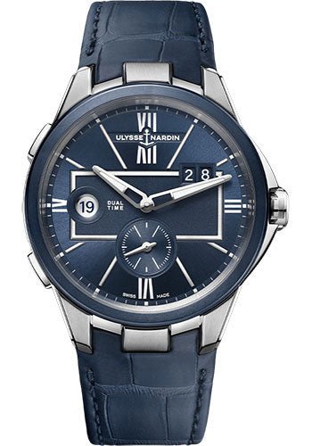 42 mm stainless steel case, blue dial, Caliber UN-24 self-winding movement with second time zone quick setting, approximately 42 hours of power reserve, leather strap, pin buckle. Water resistant to 50 m.
