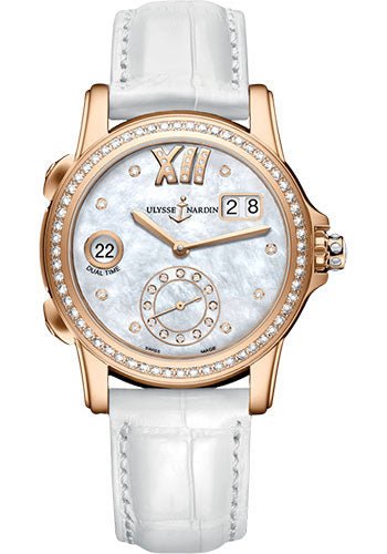 Ulysse Nardin Lady Dual Time 37.5 mm – Rose Gold Case – White Diamond Dial – Leather Strap